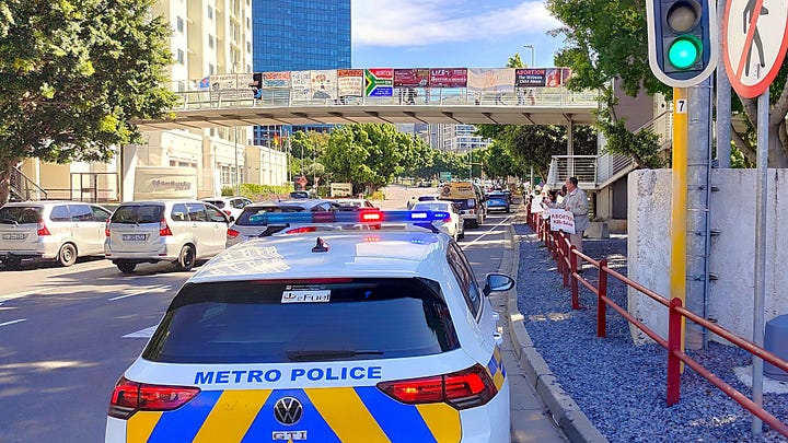 This we did in Buitengracht Street, downtown Cape Town between the entrance to the Waterfront and the Cape Town International Convention Centre.